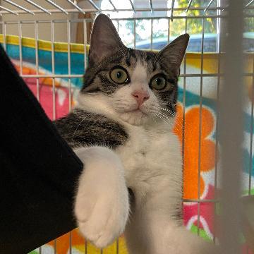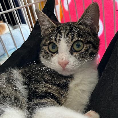 キーちゃんの名前の由来は幸運を引っかける鍵しっぽ🗝から。宇都宮大学内で保護されました。人懐こく穏やかな性格で、キーちゃんのケージに近づくと手を伸ばしてきて、遊んでくれます☺️ラッキー入学時にあった お鼻の点々は、模様だと思っていたら、汚れでしたー🤣とっても美人なキーちゃんをよろしくお願いします♪