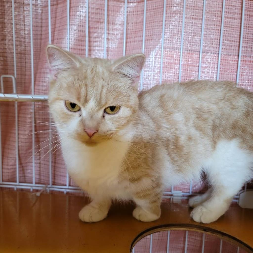 性格:大人しく温厚で飼いやすいです。スコティッシュホールドですが、足が短いです。