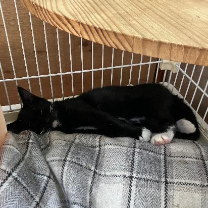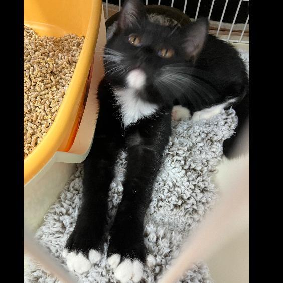 下あご、手足の先、胸とお腹の白い模様がとってもキュート︎💕︎ちょっとビビりだけど、なでられるのは大好き♪ 今のところ、トイレ砂が一番楽しいおもちゃだそうです笑