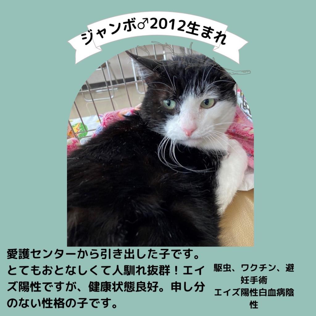 去勢手術済、ワクチン済、ウィルス検査(エイズ陽性白血病陰性)、駆虫済