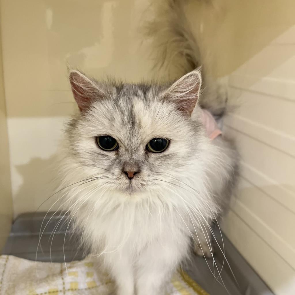 日常の様子:トリミングサロンの入口の猫舎にいますが、皆さんに話しかけられるたびにゴロゴロ甘えています