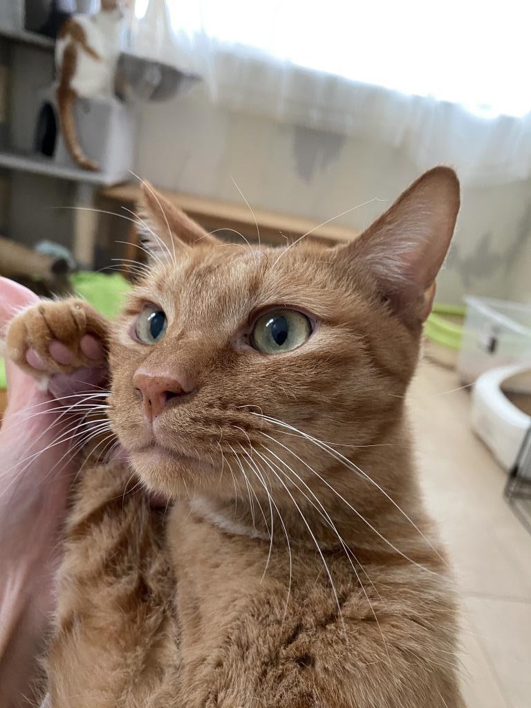 人がいると常にスリスリの甘えん坊さん、よく食べよく遊び、子猫に好かれる頼れるお兄ちゃん的存在。