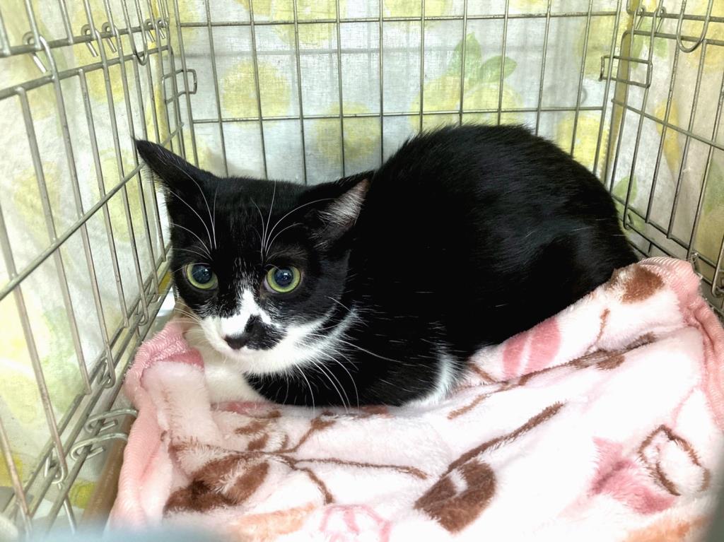 管理地区への手続き中に子猫を連れた猫を見つけ、保護しました。その子猫の一匹がプラムです。3匹の兄妹も保護しました。母猫は避妊手術後、地域猫となりました。子猫たちはすくすく育ち、室内生活にも慣れたため、里親様を探すことにしました。