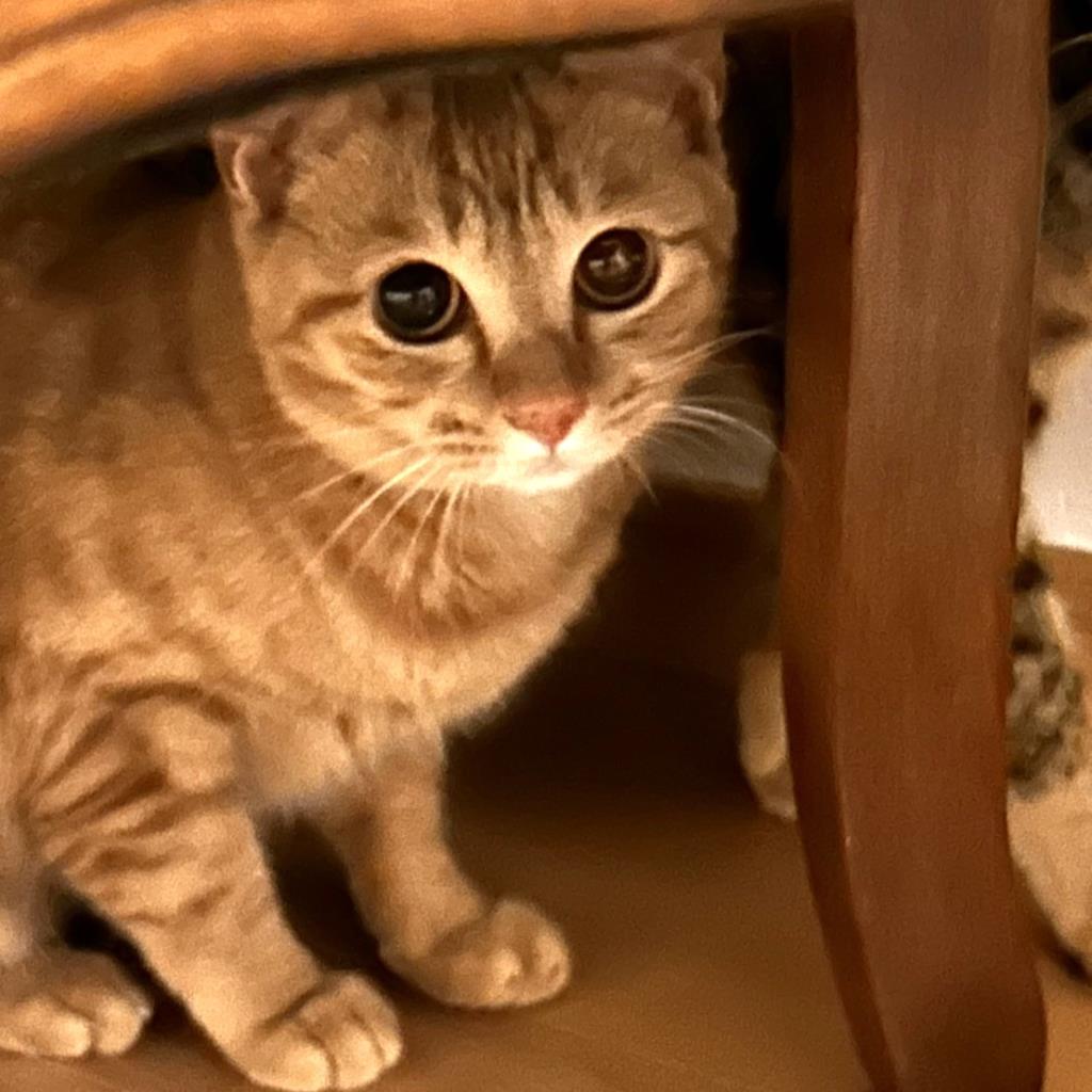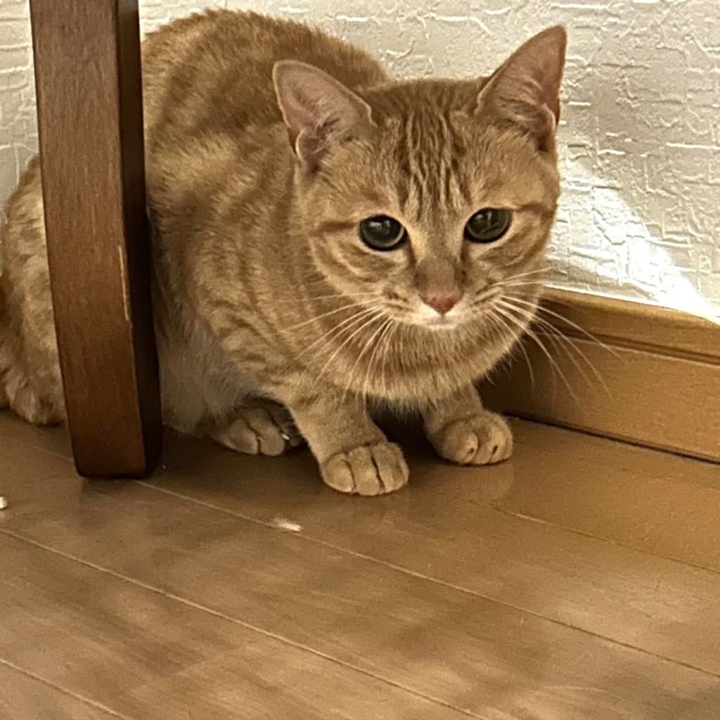日常の様子:猫部屋でフリーで過ごしています。人が入ると部屋の隅やカーテンの裏などに隠れてしまいます。夜中にミンミン、ムウムと大運動会をしています。