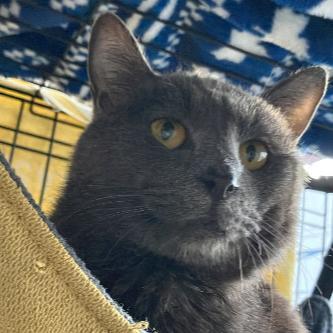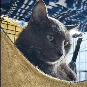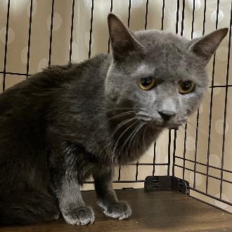 2023年末の多頭飼育崩壊からラッキーにやって来ました。ちょっとシャイですが、本当は甘えた君😊ロシアンブルーのようなグレーのボディに黒いお鼻のダンディなビジュアルと困り顔が絶妙です。