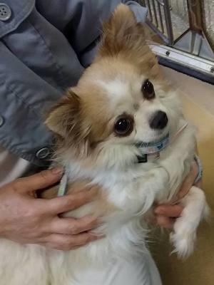 後ろ足が左右ともパテラのグレード3で、内側に曲がっているような状態ですが、歩行や運動には、さほど問題なさそうです。しかし、お散歩は、経験が少ないためか、現時点では固まって動きません。あるいは、これまで母親にくっついて行動することが多かったようなので、ひとりになって怖がっているのかもしれませんが、いずれにせよ、ほとんどできません。これから少しずつ練習です。