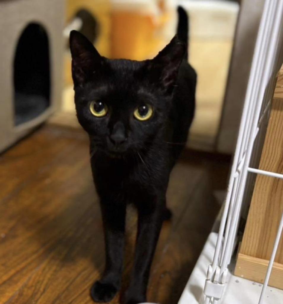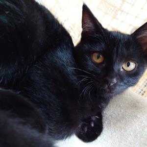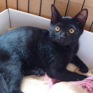 真っ黒な艶やかな毛並みに、まあるい黄色の瞳が魅力的。かくれんぼが上手で、探すのに苦労しますが、実は撫でられるのは好きなようです。警戒心はあまりないようですが、保護されるまでの環境のせいか食事の時間やトイレの場所を認識するまでに少し時間はかかります。ミミーのペースにあわせてゆっくりと寄り添ってくれる里親さんを募集しています。