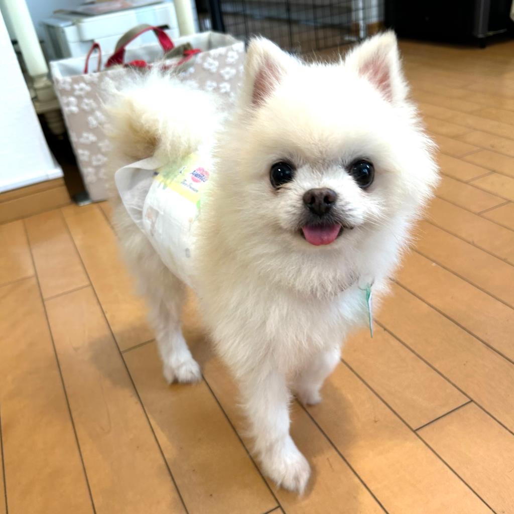 日常の様子:好奇心旺盛で同居犬のあとを追います。チョコチョコと家の中を歩き回って探検しています。マイペースなので、ご飯はお腹が空いてから他犬と隔離してあげています。びっくりすると、固まります。お留守番はゲージ内ですが、基本的に室内フリーで過ごしています。