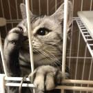 日常の様子:日中はほとんど大人しく寝ています。声をかけるとケージに体を擦りながら、ゴロゴロと甘えてきます。高いところに登るのが、あまり得意ではありません。
