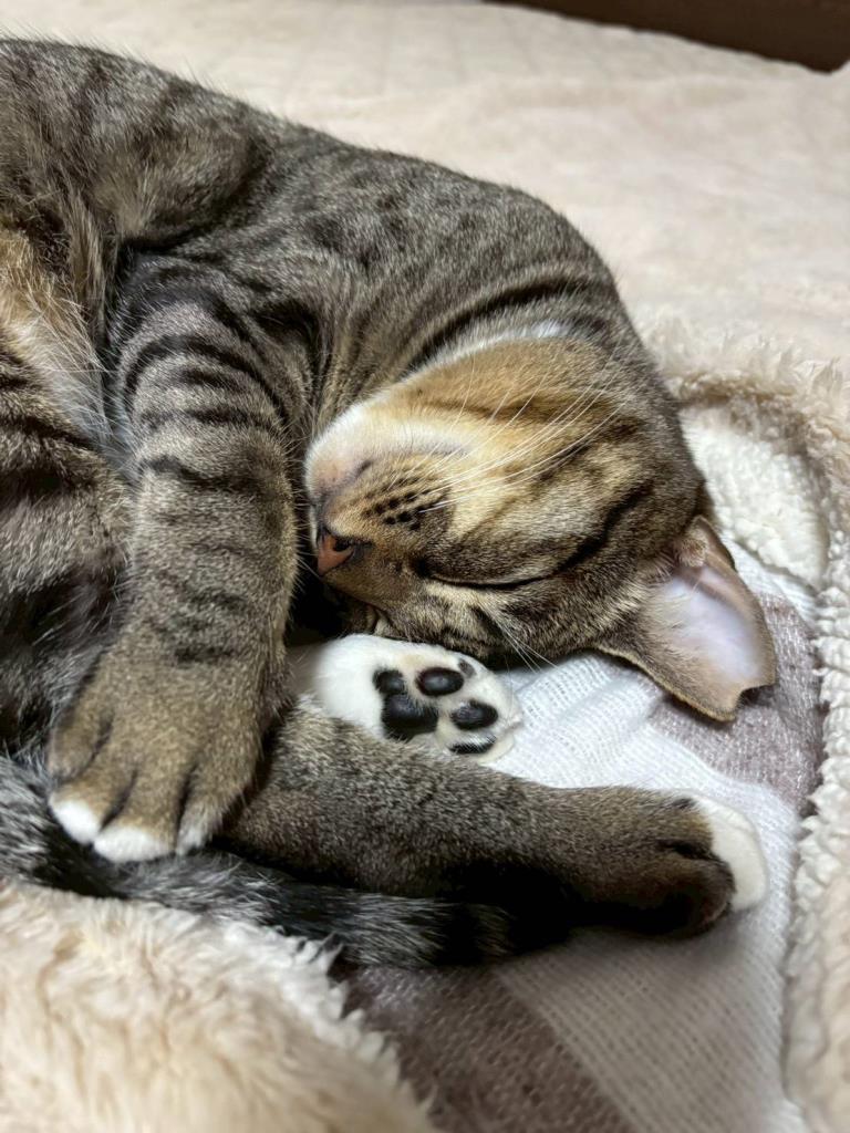警戒心が強いので甘えに来てくれるまで時間がかかりましたが、今では後追いをしたり隣で寝てくれるようになりました。