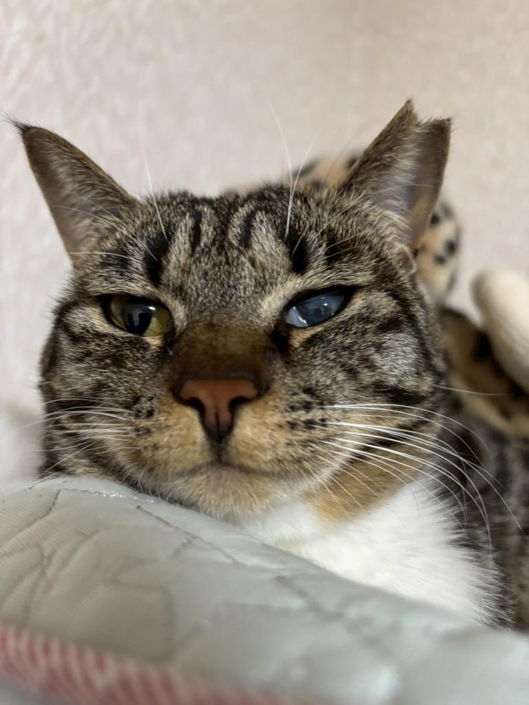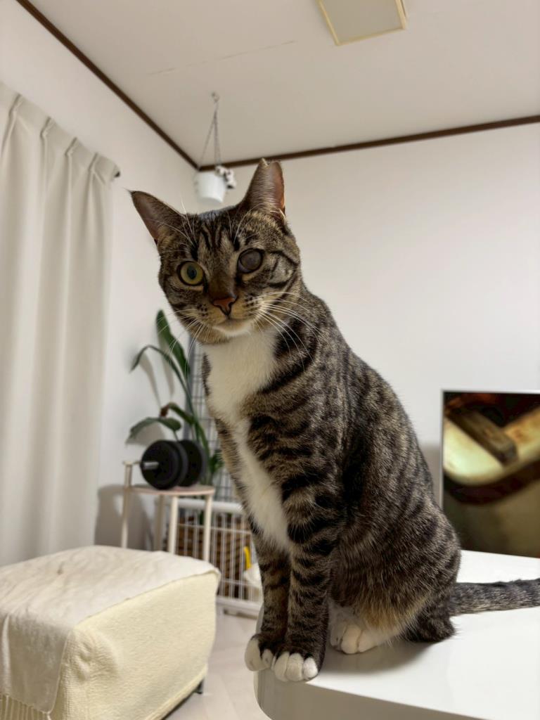 保護当時の猫風邪の影響で左目に瞬膜と白濁が残っていますが視力に問題はなさそうです。