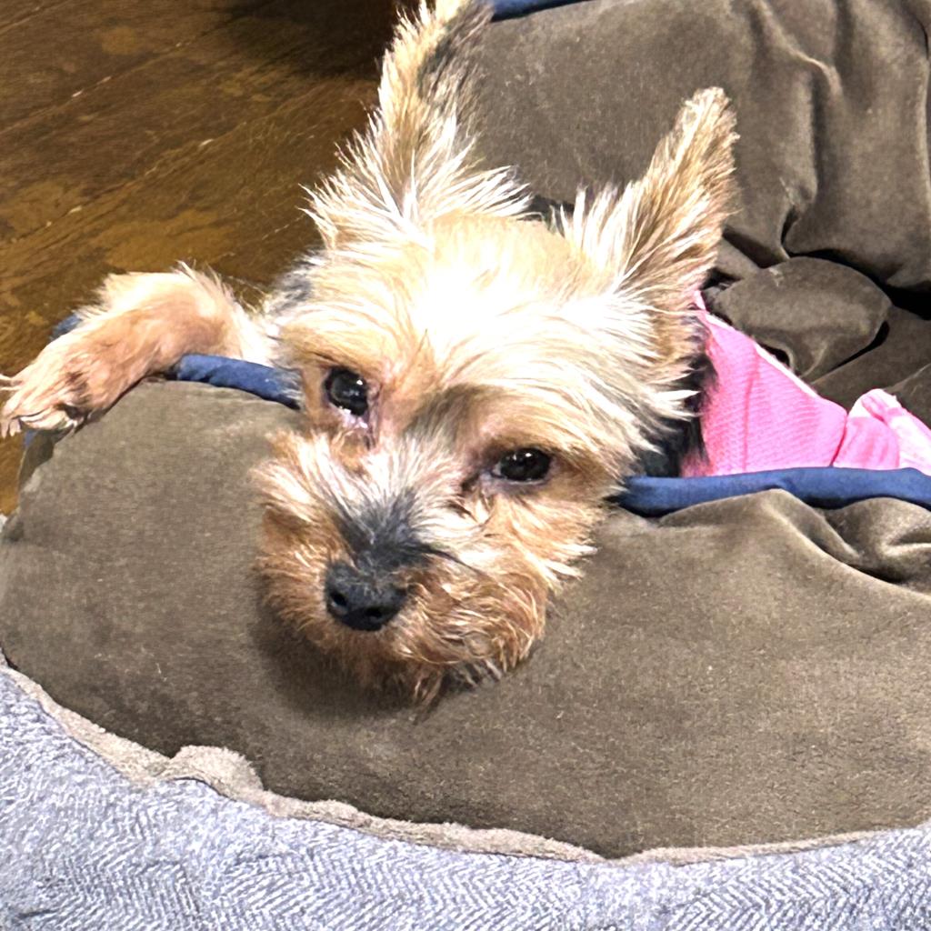 日常の様子 : 自分のお気に入りのベッドにいることが多いです。うちの子達の後をついて歩いたり、人の手を舐めたりして甘えるようになりました。