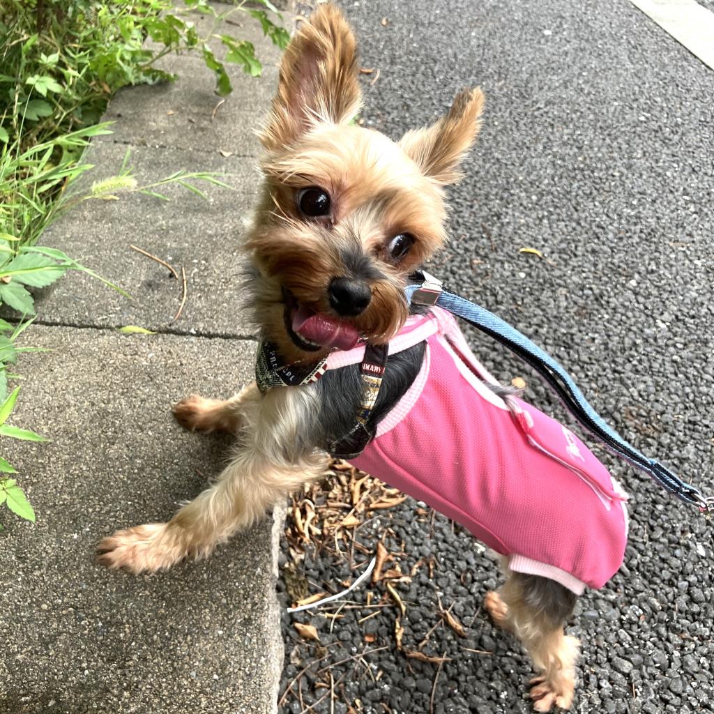 散歩 : 近所の環境に慣らすため抱っこで歩いています。練習中。