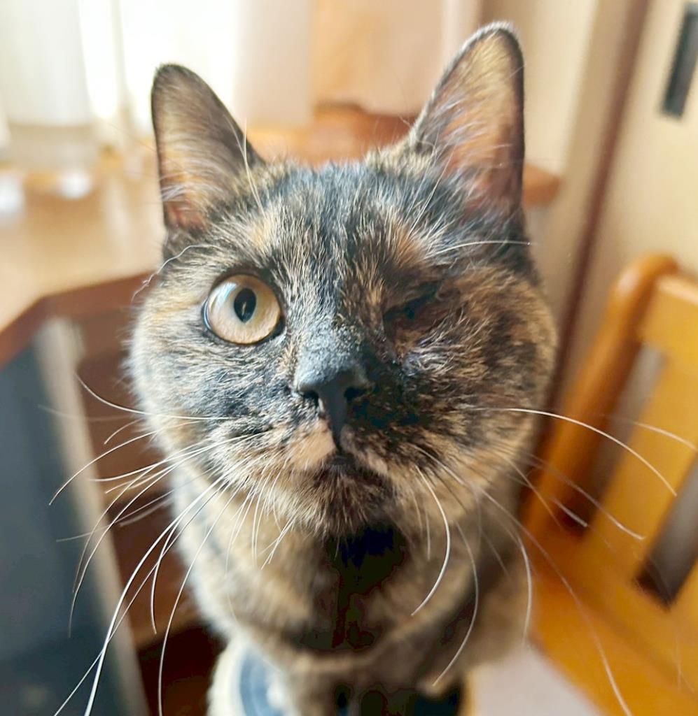大きな道路の真ん中にいた所を保護してもらい、たくさんの方の協力があり休憩所へ💛左目は見えませんが、活発で天真爛漫・元気いっぱいです💖人も猫も大好きなスリゴロさんです!