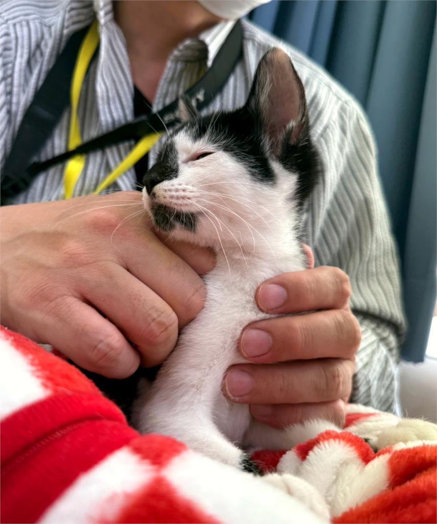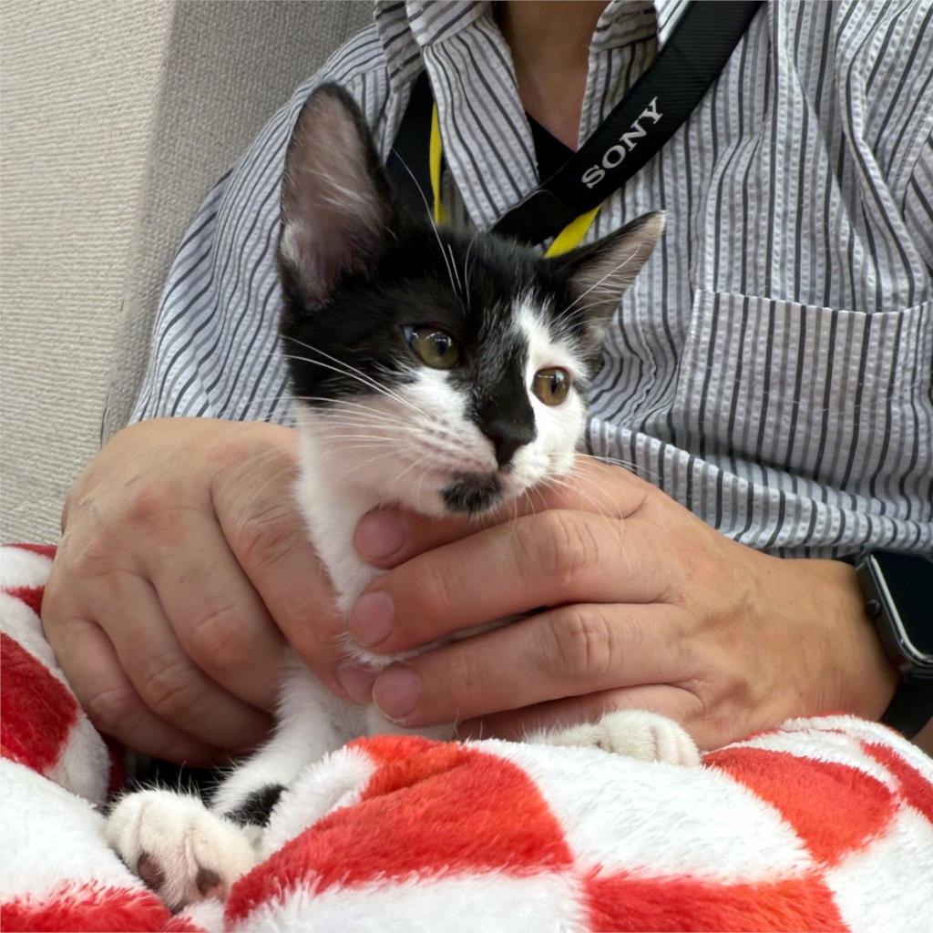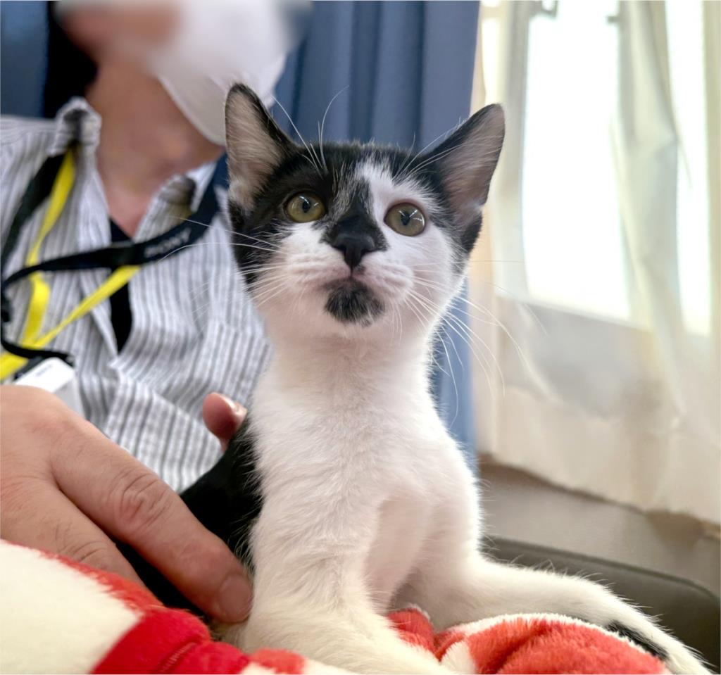 知人より衰弱して動かなくなっている子猫がいると連絡を受け、現場に行くと、横たわって動かなくなった子猫とその周囲に状態の悪い子猫が数匹いました。か弱い声でかろうじてニャーと鳴くのが精いっぱいの子猫の他にも目ヤニで眼がふさがっている子猫や、風邪で顔がぐしゃぐしゃの子猫などそこにいた全6頭を保護しました。治療とケアですこしずつよくなり、今では全頭が元気いっぱいのやんちゃ子猫達に成長しました。治療と共に、室内で暮らすためのトレーニングも済ませ、トイレやご飯も粗相することなく覚え、人にも猫にも慣れてきたため、里親様を探すことにいたしました。どうぞよろしくお願いいたします。