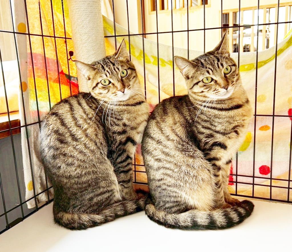元気いっぱい食欲満点の仲良し兄弟です!親子で保護され、母猫のみくりもそっくりでキュートなキジトラファミリーです!