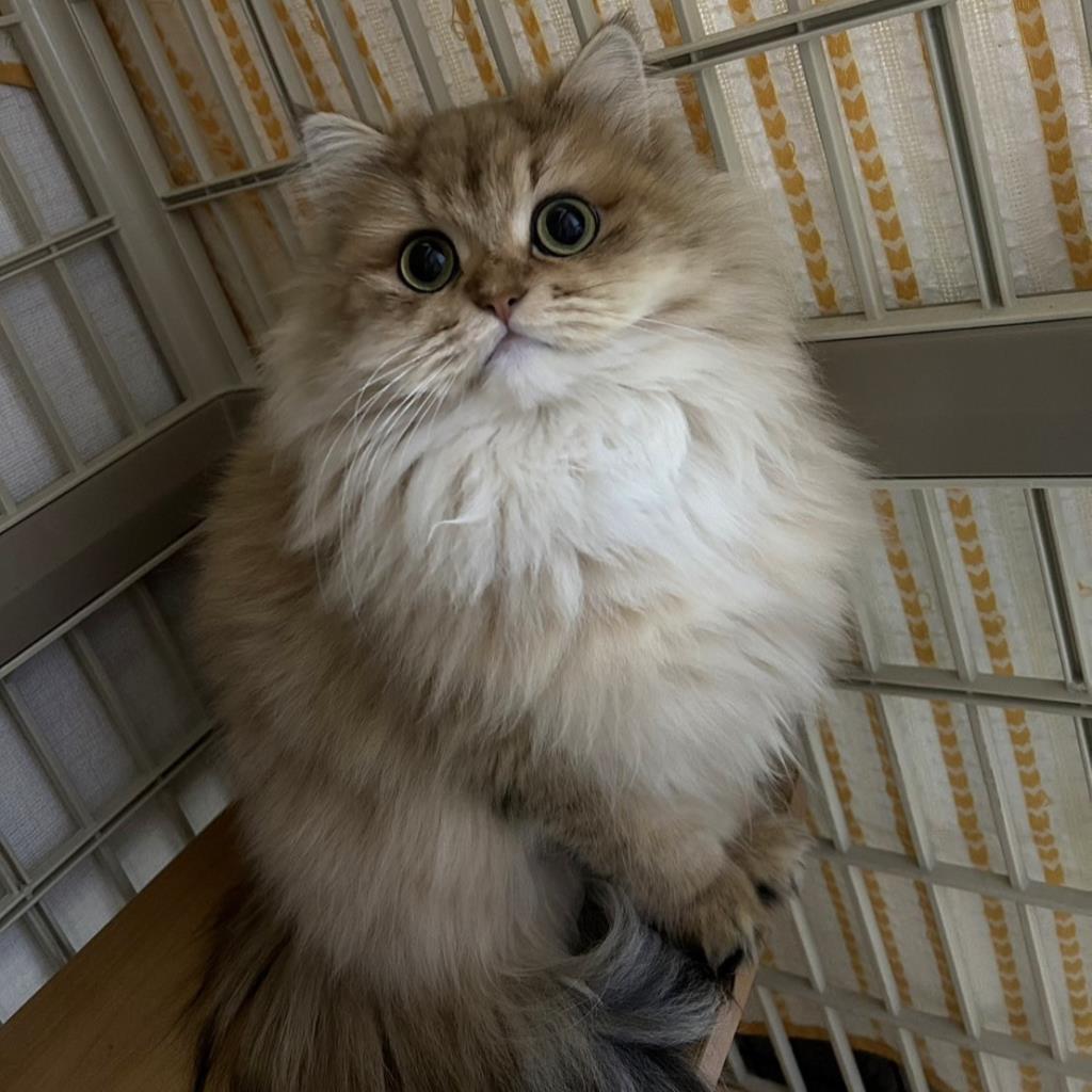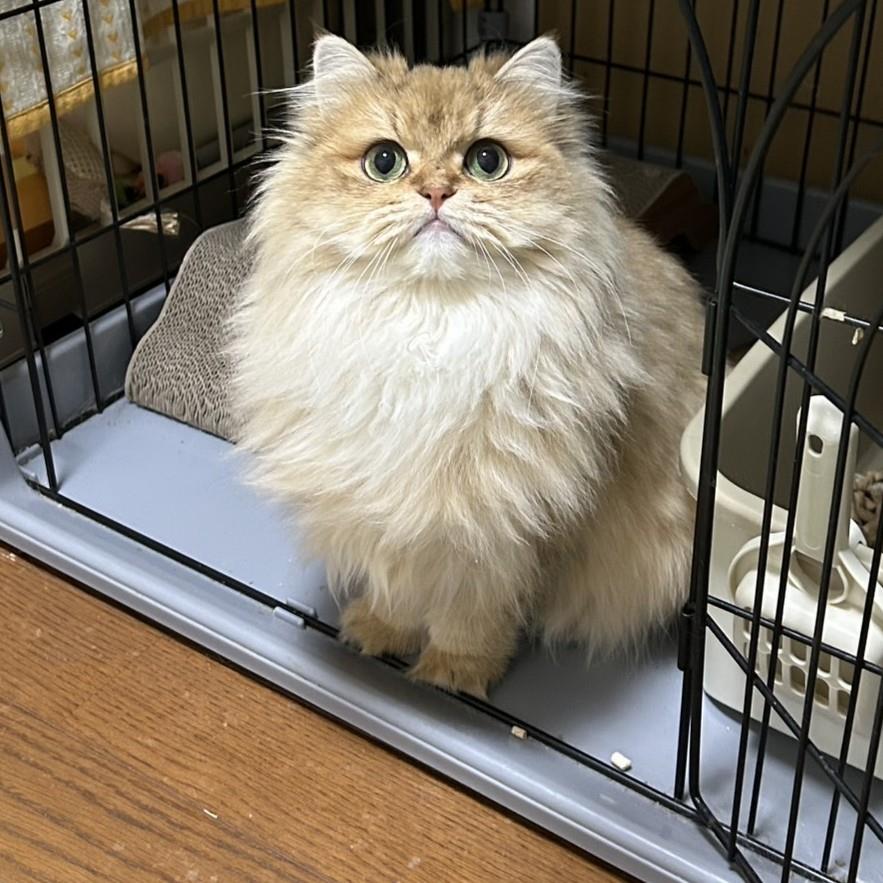 日常の様子:ケージから出てくるようになり、日中は猫部屋でフリーで過ごしています。爪研ぎポールや猫じゃらしで遊ぶのが好きです。 時々遊んでほしくて猫部屋から鳴いて呼ぶようになりましたが、触ろうとすると逃げます。