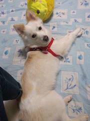 保護当初、短期間の間に自分が置かれているあまりの環境の変化に、不安で食事も取れず、トイレも我慢して鼻鳴きばかりしていましたが、今は食欲もあり、鼻鳴きすることも減ってきました。