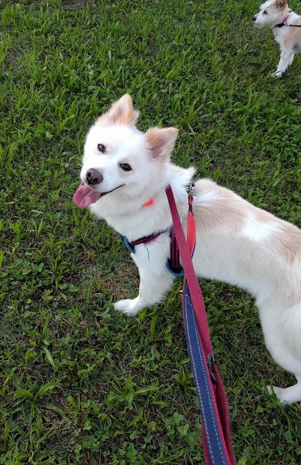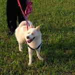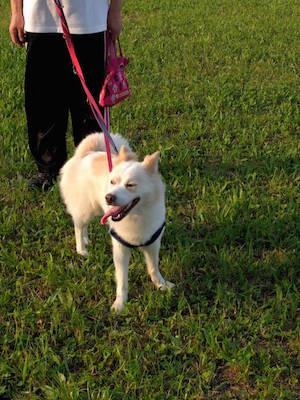 お散歩は大好きで、ゆっくりしつこく匂いかぎをしながら歩きたい子です。他犬にとても興味があり、出会う犬とは遠くにいても必ず挨拶をしたがって引っ張りますので、抑えられる年代の方ではないと振り回されてしまいます。また人も大好きで、他犬と上手に挨拶した後、必ず飼い主さんにも上手に甘えて挨拶をしますので、今とても周囲で可愛がられています。他犬に自分から威嚇することはありませんが、しつこく威嚇されると激しく反撃しますので、相手の犬の様子をよくみながらそうなる前に引き離す必要があります。