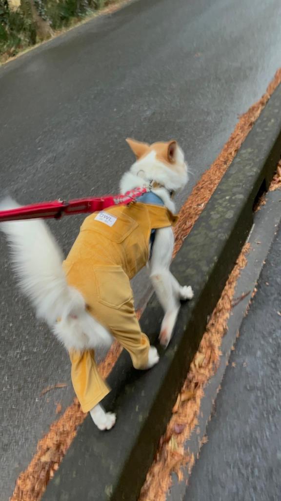 お散歩中ビックリした時は後ずさりをするタイプです。