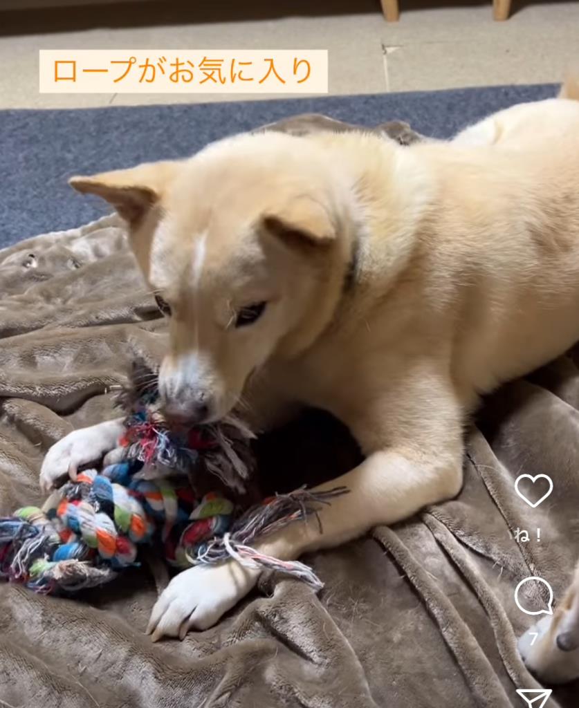 ロープやヒヅメなど噛むおもちゃを楽しむようになりました。